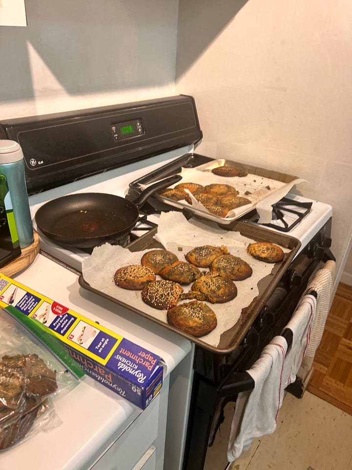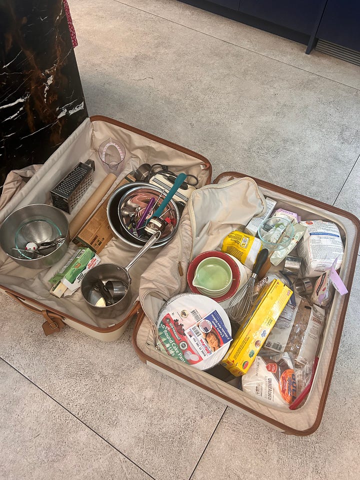 I hauled this giant suitcase full of mixers, sacks of flour, metal bowls, and other heavy shit from New Jersey to Brooklyn, back and forth throughout the baking process. One thing I will say is thank goodness for the large extra kitchen in Dalton’s apartment building. He graciously let my partner Emma and I bake in there (for probably over 10 hours total) and I sincerely appreciate it.